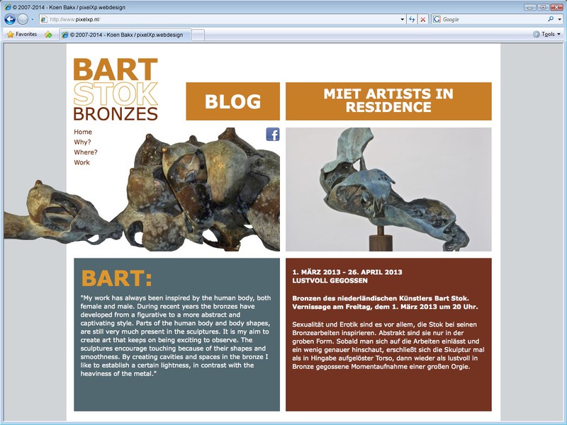 Bart Stok maakt abstracte bronzen beelden, die zijn geïnspireerd door het menselijk lichaam. Delen van het menselijk lichaam en lichaamsvormen zijn vaak aanwezig in de sculpturen.