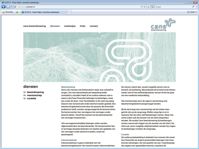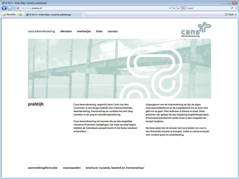 Cans bewindvoering wil mensen die op alle mogelijke manieren financieel vastgelopen zijn weer op weg helpen. Cans bewindvoering, opgericht door Carin van den Crommert, is een jonge praktijk voor inkomensbeheer, bewindvoering, mentorschap en curatele met een lang verleden in de zorg en schuldhulpverlening.